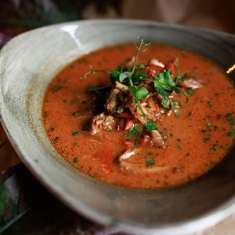 Pikantna zupa rybna pomidory, krewetka, ryba, kalmar, małże, śmietanka 35 zł