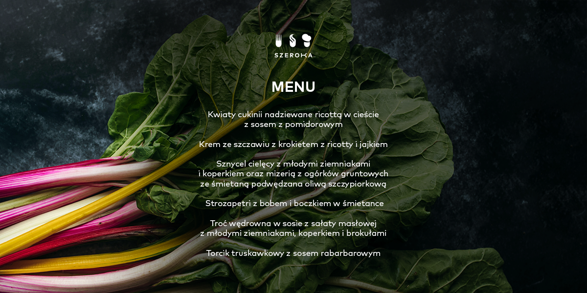 W weekend 17-19 maja będziecie mieli okazję spróbować w Szerokiej autorskich dań, w których królować będą między innymi młode ziemniaczki, szczaw, kwiat cukinii, truskawka, rabarbar czy bób. A wszystko to w połączeniach doskonale i mniej znanych!